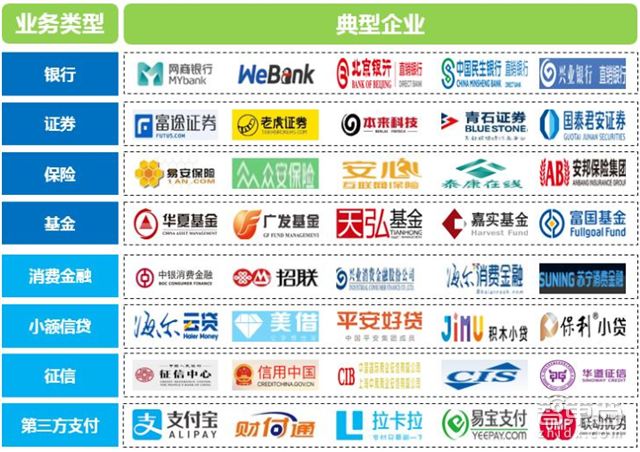 金融科技类则指新兴技术支撑服务提供方,从技术领域(云计算、大数据等)出发可进一步划分为云计算、大数据、区块链和人工智能四类,从服务领域(客服、风控等)出发可进一步划分为客服、风控、营销、投顾和支付五类。