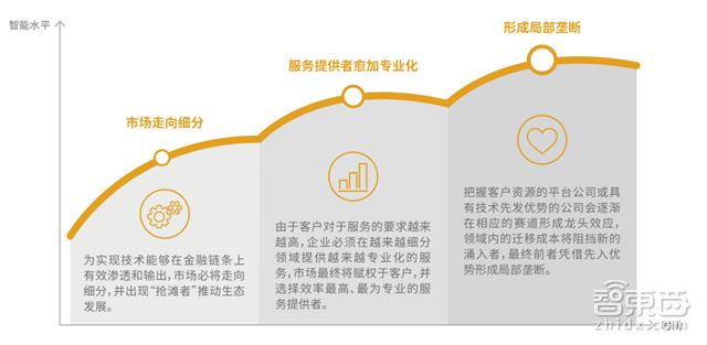未来智能金融生态将在各方推动努力下构建并持续进化。市场会愈加细分,局部构成垄断。各方在切分金融服务链条的同时,升级完善自身能力,对应的参与角色也有所蜕变。最终生态将会全面开放,各方达成多维深度的合作。
