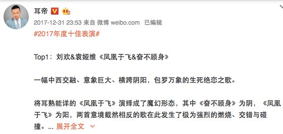 去年年末,耳帝评选出2017年度十佳表演,第四与第一,都被袁娅维占领。