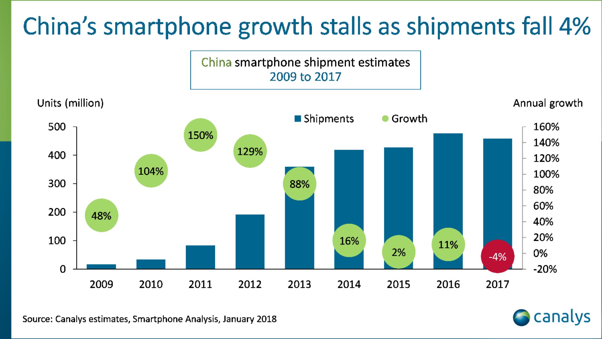 尽管中国智能手机的增长放缓论已经持续了一段时间,但当2017年年底真正发放“成绩单”的时候,现实却比预测更加残酷。