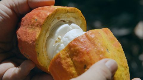 这种可可果的每一颗果肉里,都包裹着一颗种子,也就是可可豆。