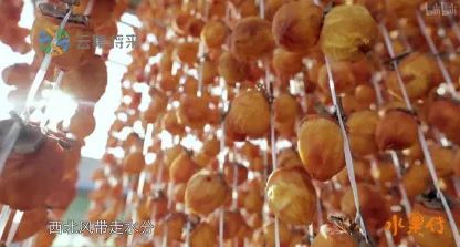 柿子去皮,挂晒,西北风带走水分,经过果农们的揉捏黄橙橙的柿子们变成了另外一幅模样。
