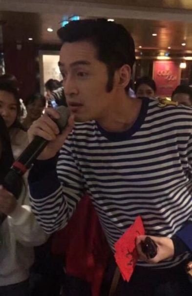 有网友晒出胡歌现身年会的照片,只见他穿着海魂衫,戴黑色墨镜,造型神似猫王。手里还拿着一堆红包,表情呆萌,鬓角可以说是很抢镜了。