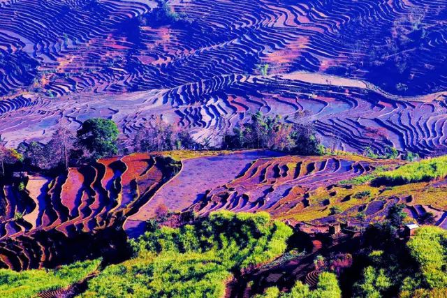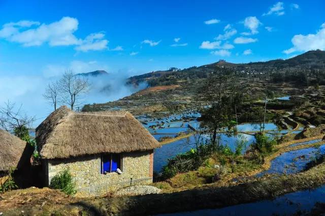 当然还有一年四季皆有看头的大美元阳梯田。1月进入灌水季,没有稻子、平平整整的梯田将层次感发挥到了极致,星星点点的阳光微微照射下来,光影效果美得不像话。