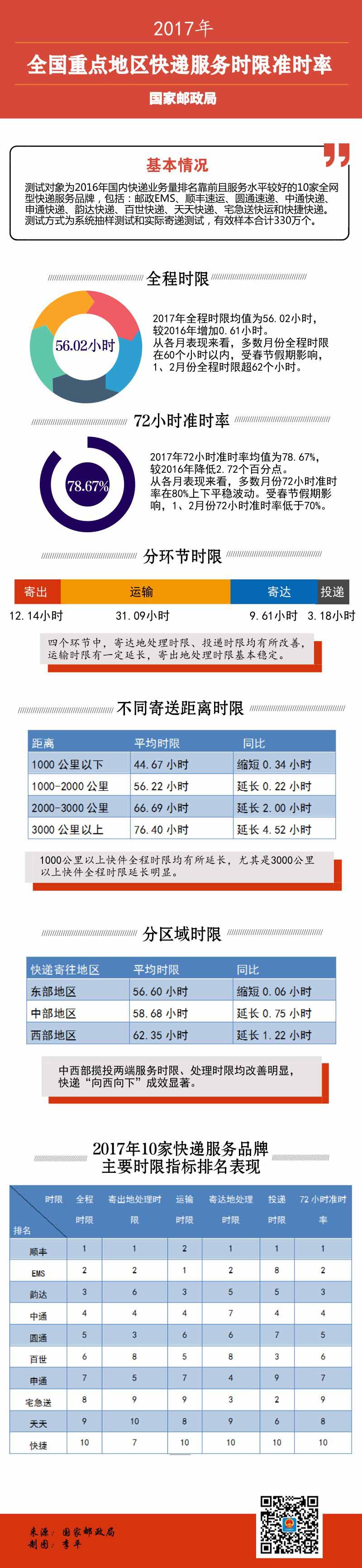国家邮政局发布关于2017年快递服务时限准时率测试结果的通告。