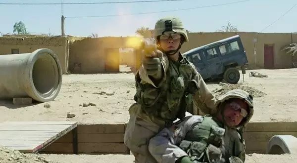 在伊拉克的战斗场面中,虽然环境是土黄色的,军装的颜色也并不鲜艳,但是你仍然可以看到很多小细节在里面显现出它的饱满感。当士兵们躲在一堵矮墙下面时,观众可以看到子弹飞过来打中矮墙飞溅出来的尘土,这种尘土的质感,其实无需用高速去捕捉,但是由于影片的清晰度达到了,所以这些砖墙飞溅出来的灰尘、小碎砖这些东西的质感,都非常像现实生活中我们亲身感受到的东西。