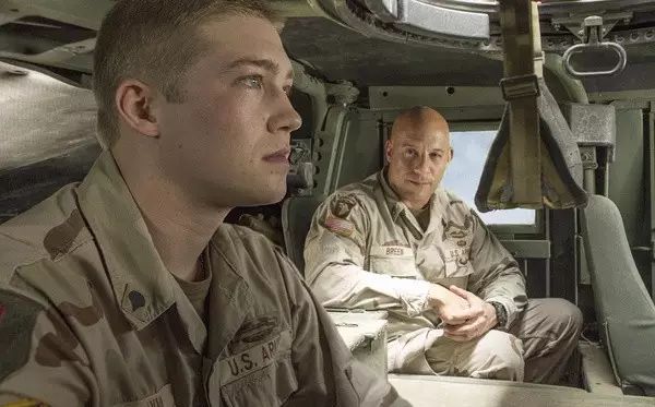 但是你明显可以感觉到,班长这个人物的结尾是有点草率的,影片唯一一处超现实的场面是比利回到加长悍马车时他看到一辆战车。战车里一定有班长,他的精神偶像在,似乎除了这个手段没有一个更巧妙的设计。
