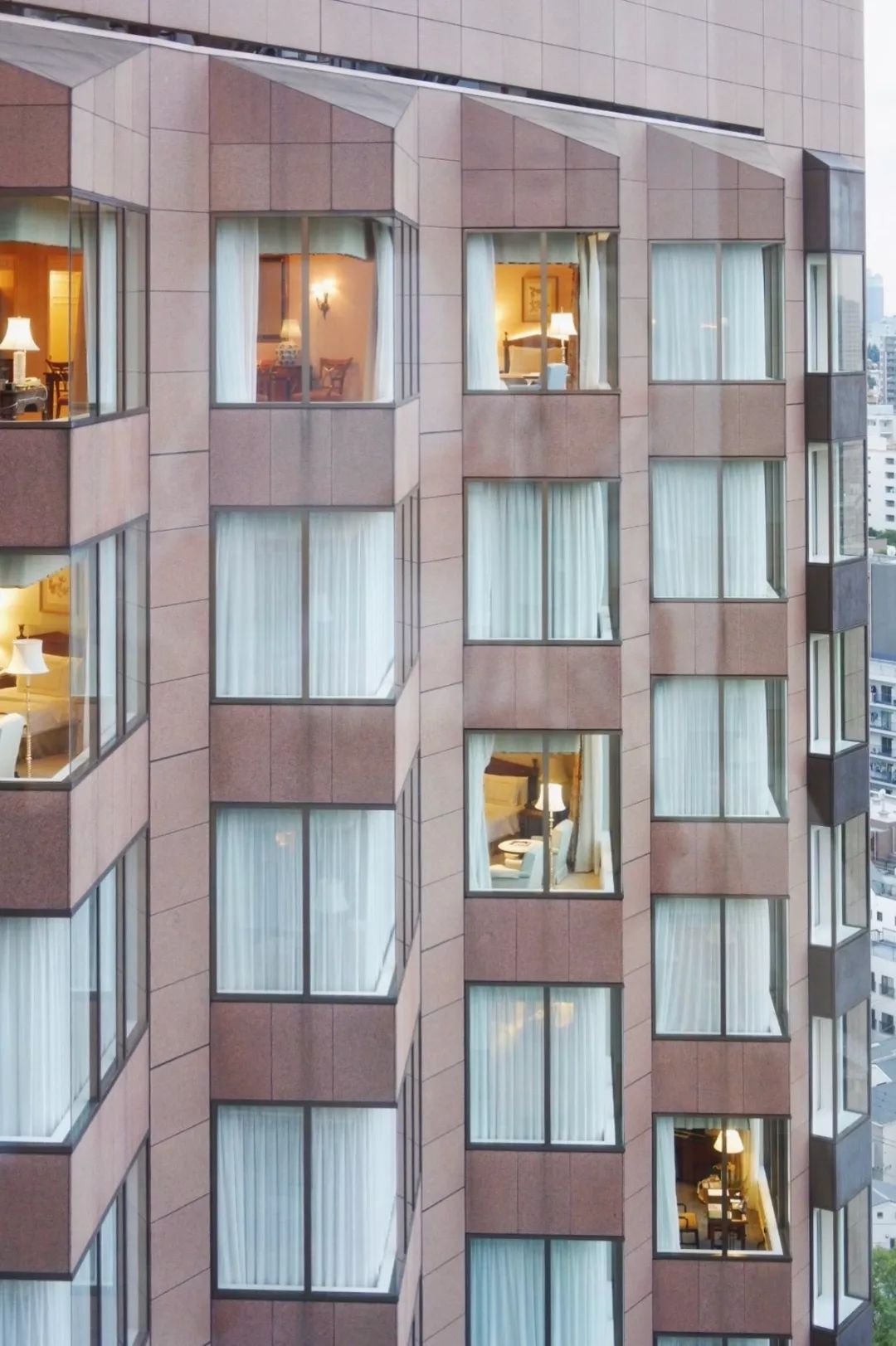 透过客房玻璃窗,东京的城市风景也都能尽收眼底。夜晚灯火阑珊,东京塔、天空树交相闪烁,异常迷人。