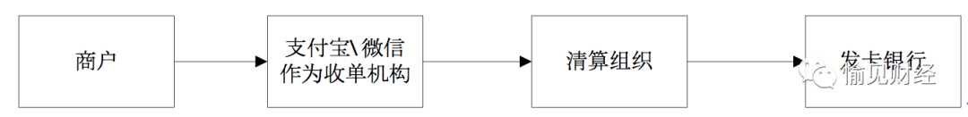 也就是说,我们扫码的交易信息从APP至商户后,并非直接上送给支付宝或财付通,而是首先去了外包商那里,清算的资金链条从上至下正好相反,但也同样会经过这些外包商。这也是为什么不少用户在扫码时会识别或跳转诸如“收钱吧”这类支付平台。