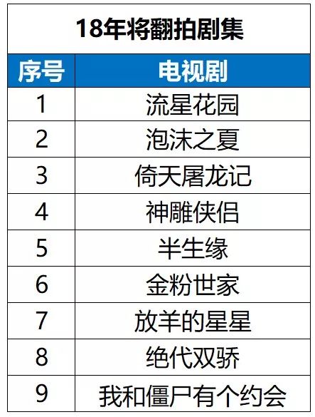 事实上,接下来,将有一大波翻拍剧正在赶来的路上,我们初步统计了下,有以下9部作品都相继传出了即将翻拍的消息。