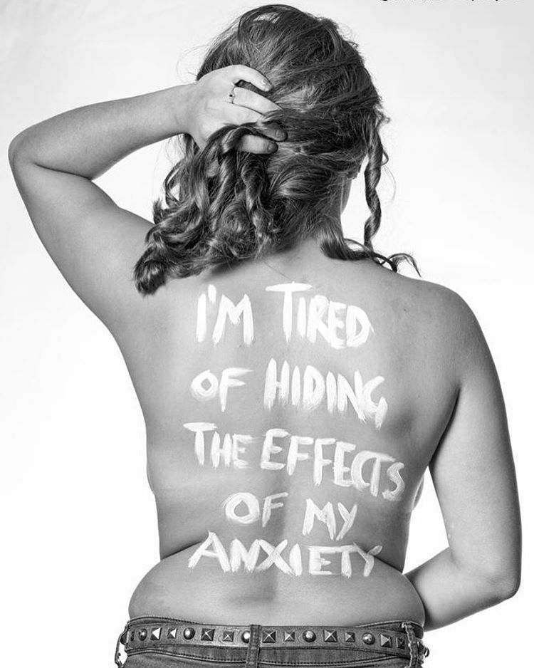 这组摄影作品以黑白色调为主。作品中的主人公们“厌倦”了自己在日常生活中所遭受的评议、批评以及不公正待遇。充满不满的主人公们将自己想说的话写在背上,以这种方式来分享他们的故事。这种方式既能够让他们保持匿名,同时又能通过个人的肖像,突出他们的脆弱。