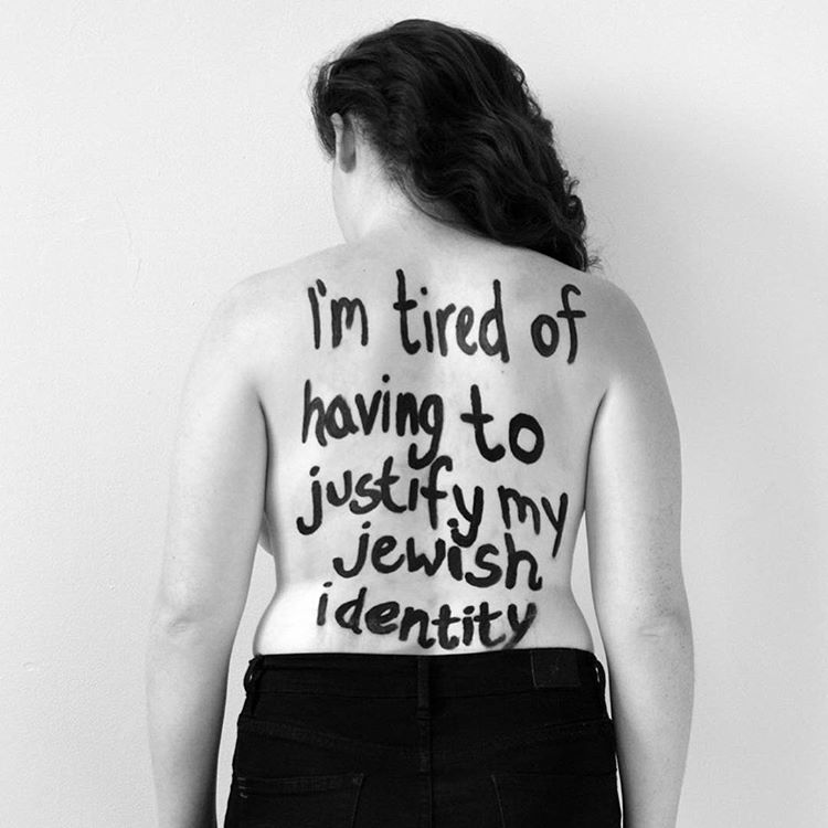 每次我因为参加犹太教重要节日,而没办法去学校的时候;每次过逾越节,我都要吃无酵面包的时候,我都必须要为我的犹太身份辩护。我必须要一直提醒人们,在全世界的犹太人心中,大屠杀如今的地位仍然非常重要。我身边的朋友人一直将我看作是“犹太妈妈”,因为我做看护工作。“在西方文化中,我的犹太人身份意味着锱铢必较(像《威尼斯商人》中的夏洛克一样)、爱去熟食店、贪婪、自私,与这片崇尚分享的土地格格不入。”