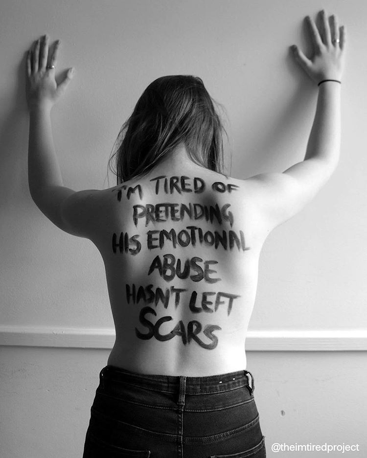 我厌倦了假装他的感情欺凌没有给我留下伤疤。