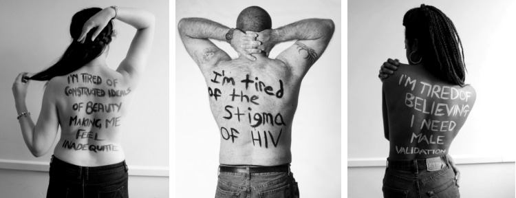 如今,人体艺术在活动家艺术中扮演着重要的角色。人体艺术这种媒介能够以个性化、直接化的方式,细细地讲述一切事物,表达人们所关注的问题,包括隐藏的不安全感和看不到的疾病等等。关注社会的保拉·阿克潘(Paula Akpan)和哈里特·埃文斯(Harriet Evans)便运用这种办法,去探索人们每天如何应对不平等和歧视,并以此完成了《我厌倦了(I'm Tired)》摄影系列作品。