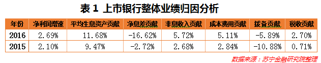 与此同时,银行业净利润增速从前期15%左右降至目前7%。通过对银行业净利润增速进行业绩归因分析(参见表1),净息差收窄对净利润增速的贡献度是负值,只能通过平均生息资产的规模扩张和非息收入贡献度提高来支撑净利润增速。