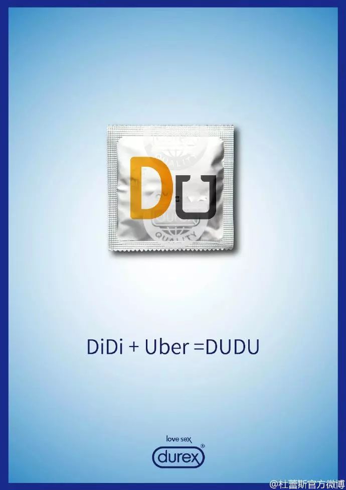 例如,在滴滴和优步中国合并的热点借势中,杜蕾斯以两个品牌的英文名称“DiDi”、“Uber”为热点的关键词,并通过拆分重组,变成了全新的文字“DUDU”,既是滴滴与优步的首字母缩写,还能看做“DO You”的缩写,可谓既与热点相关又与品牌相连。