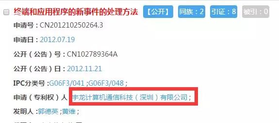 除了这三项专利,关于宇龙公司的专利申请数量一共是3284件(并非全部专利,只是检索数量),说明酷派品牌也是非常注重知识产权保护的。