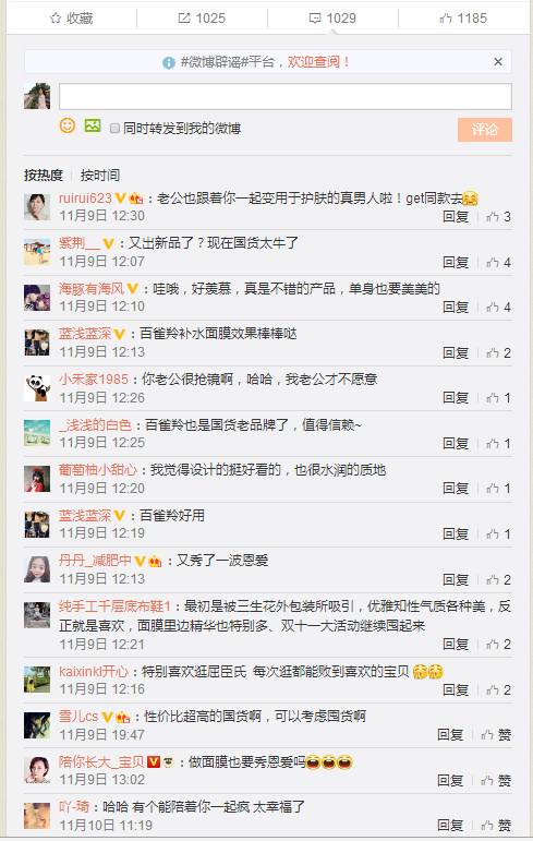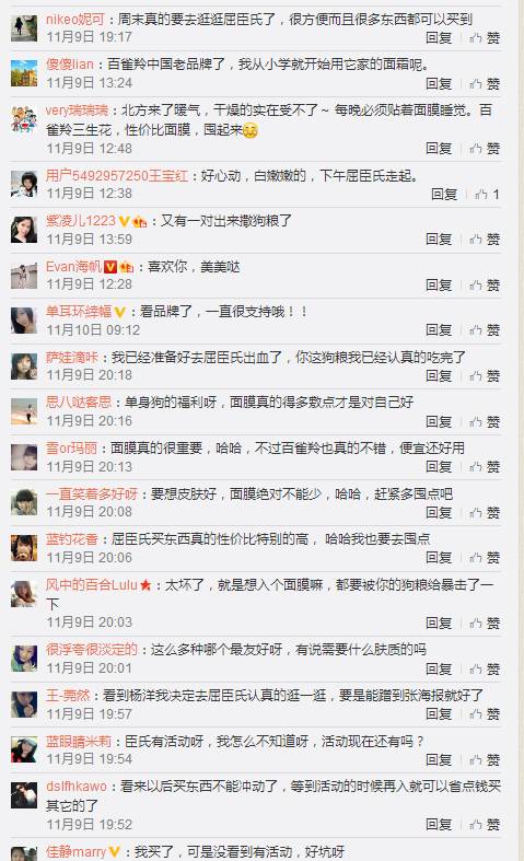 我们翻看了200条评论及转发的内容,转发评论关键词:性价比高,要去买,面膜少不了,去屈臣氏,你俩的狗粮。