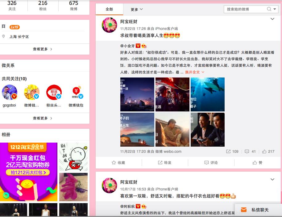 哇 这个广告贴互动很棒呀。但是,再看看她当天的发布的生活贴: