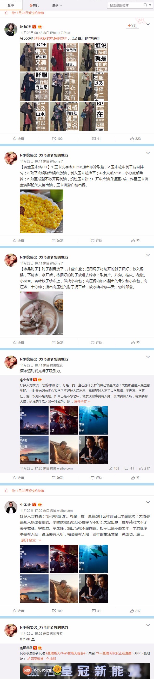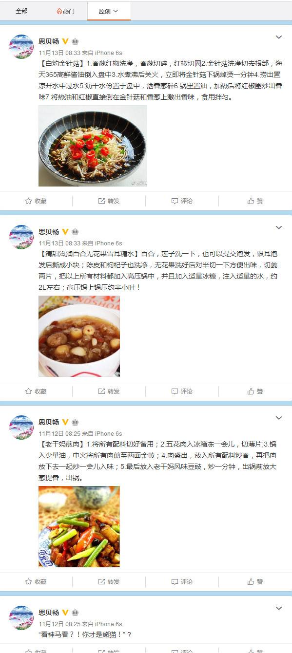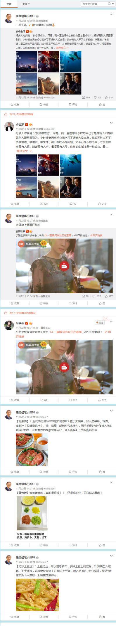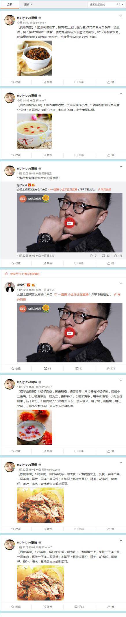 而@小金牙和@阿秋秋 ,同为时尚博主,有共同粉丝并不奇怪,但他们粉丝的微博内容高度相似,不得不让人思考:关于做菜内容发布的格式如此一致,两位博主这么多粉丝,真的都喜欢研究做菜吗?不言而喻。
