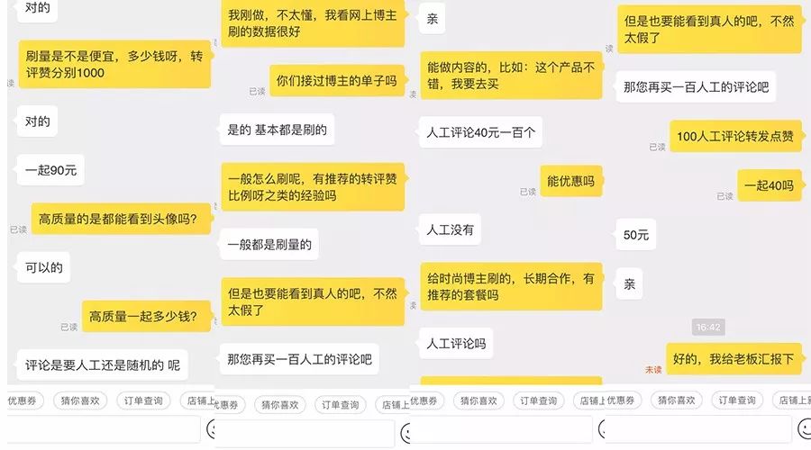 于是,阿尚叔问了下某宝,有了以下报价:90元1000转、赞数据,40元100真人评论。
