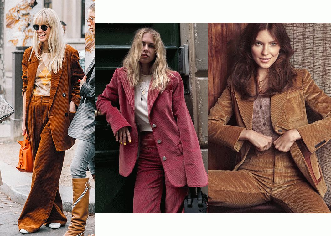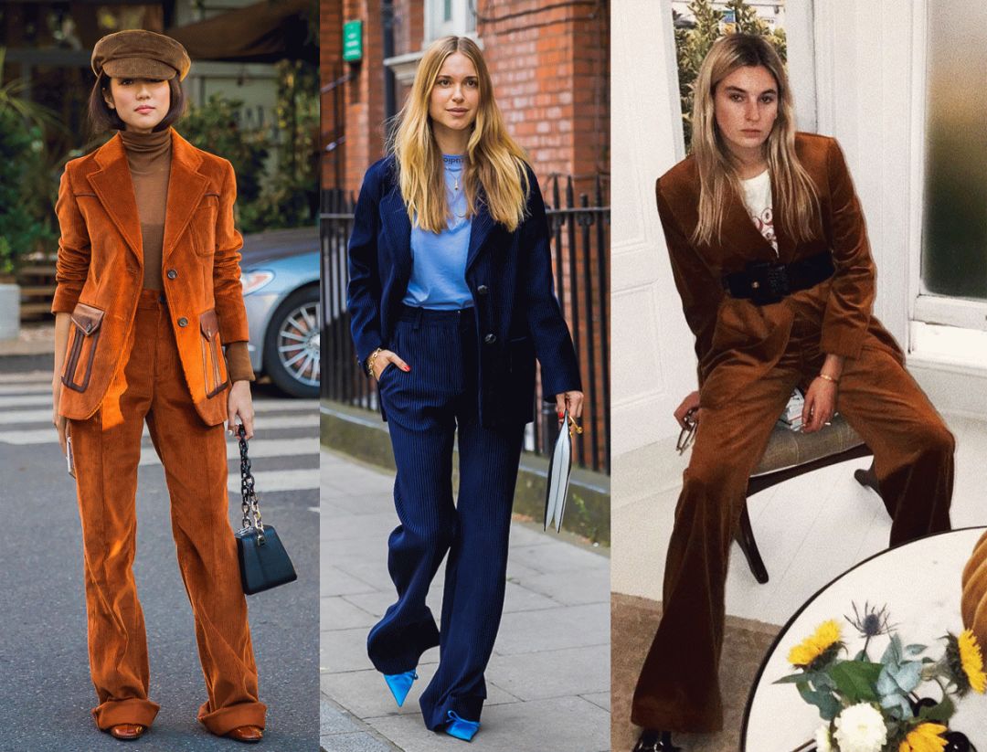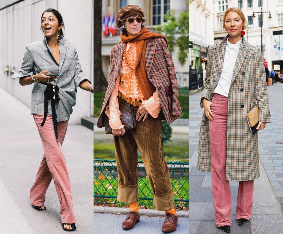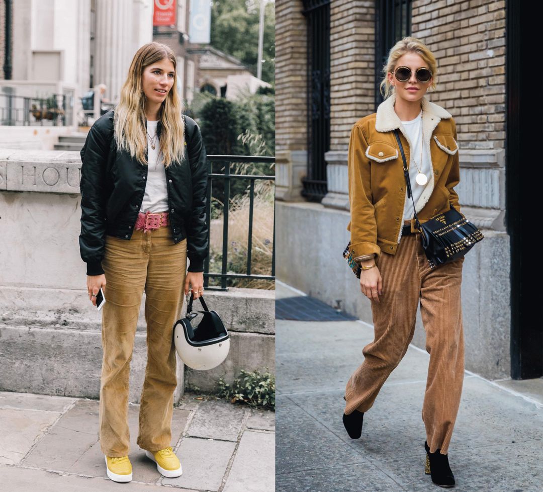 但是灯芯绒的夹克毕竟还是带着一股子率性,所以时装精们更热衷于用各种裤装进行搭配。无论是宽腿裤还是窄腿裤,拉上高腰线,就错不了!