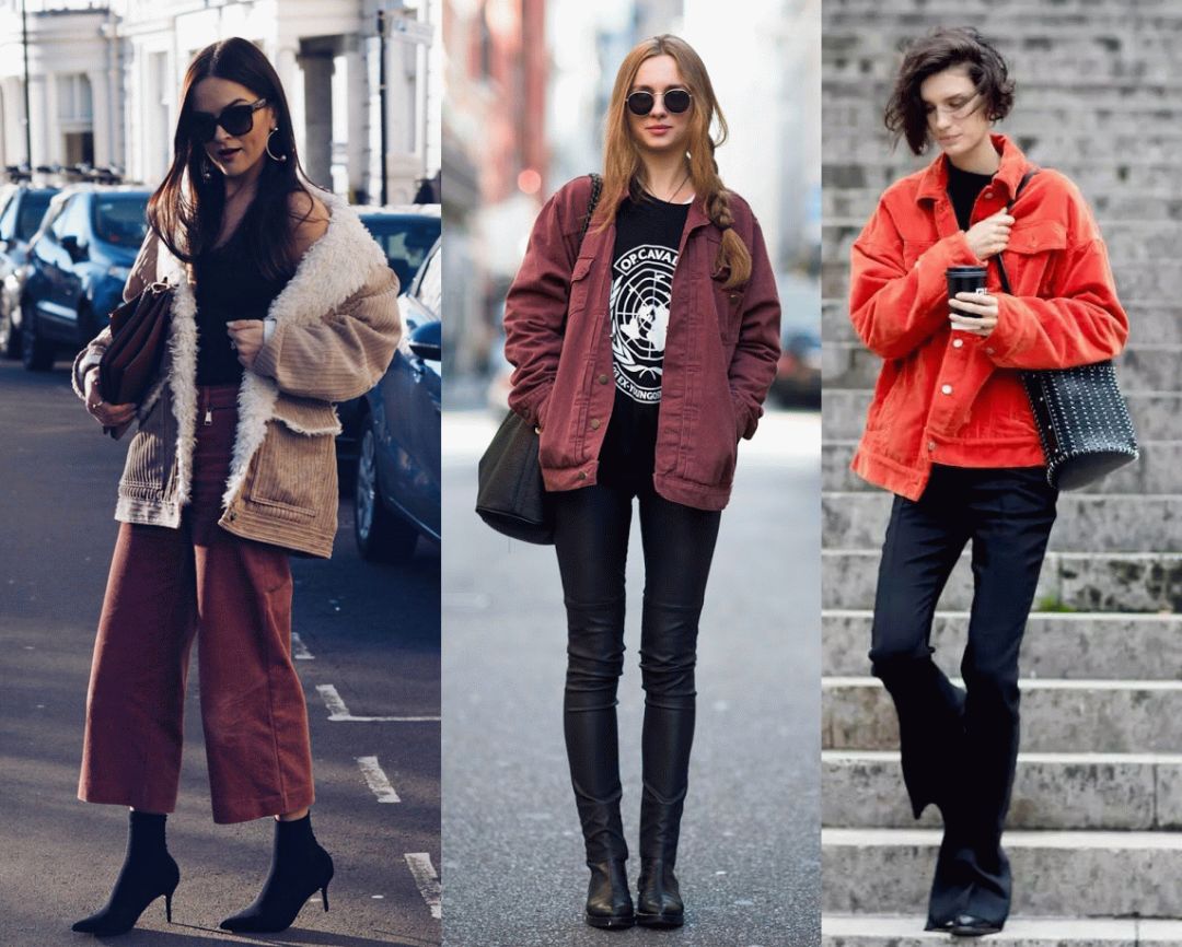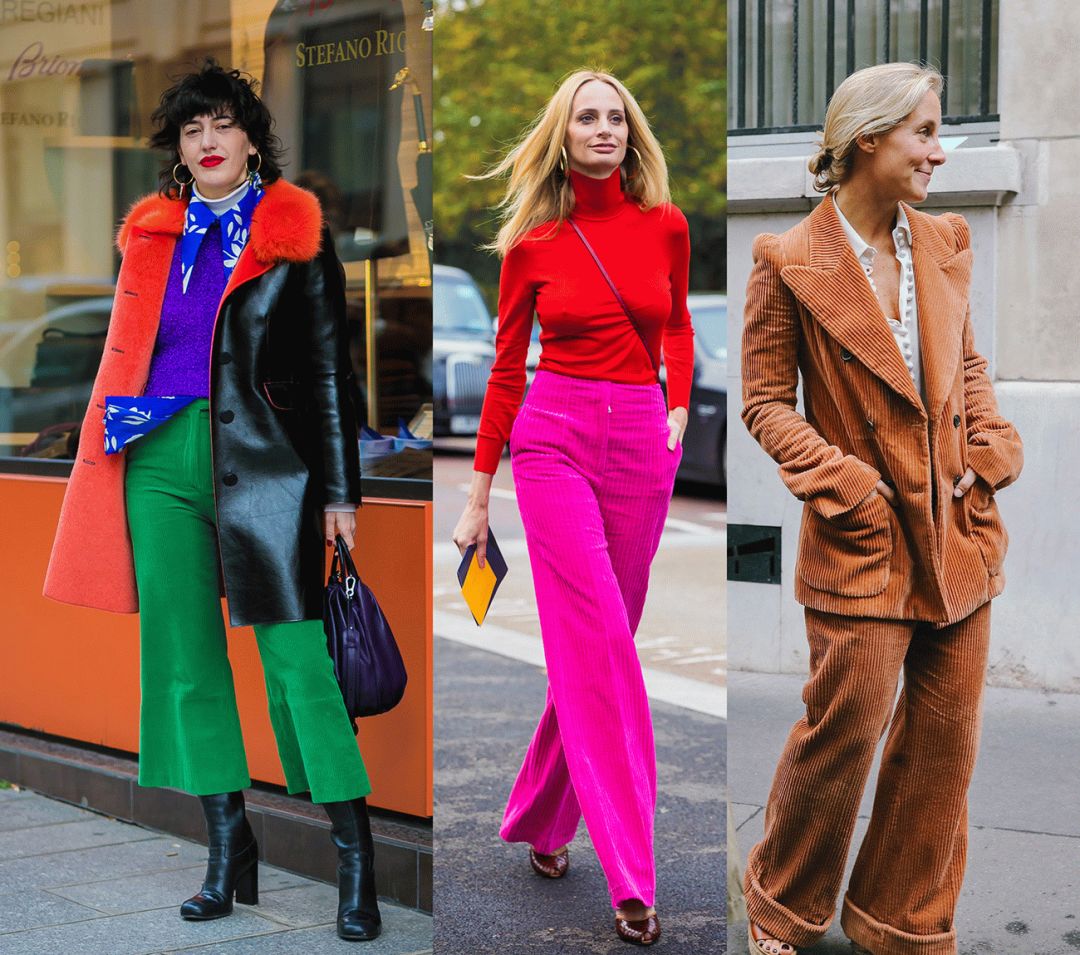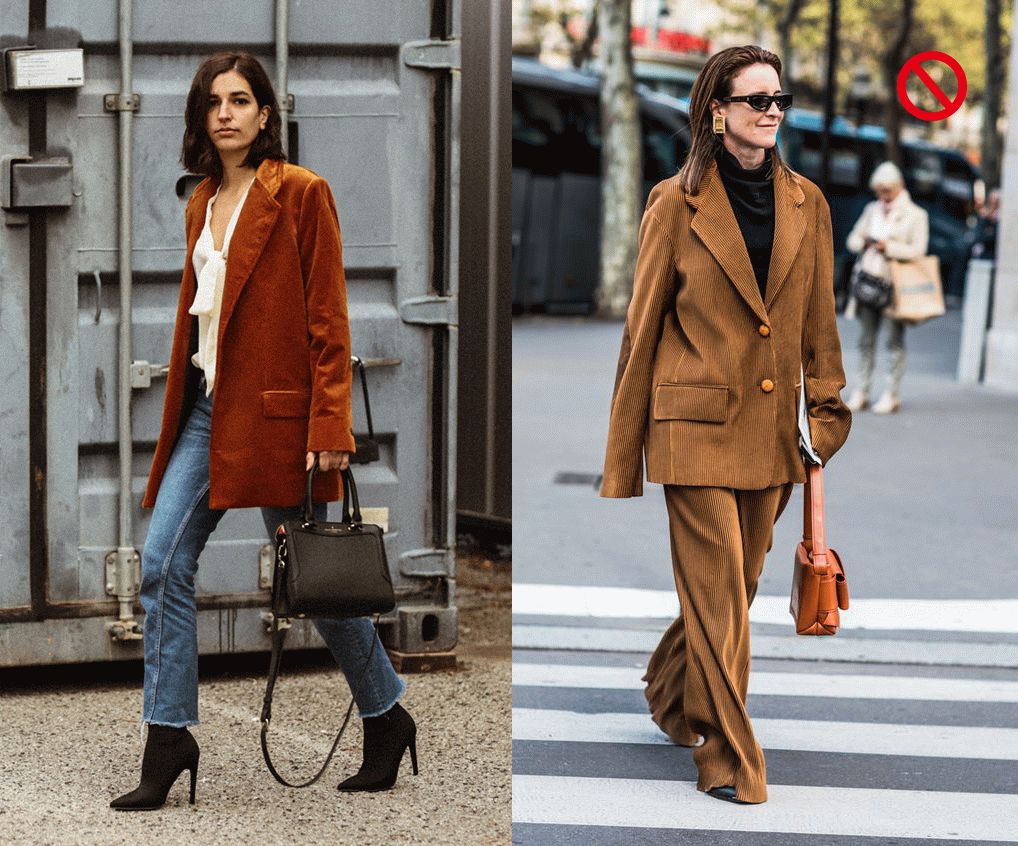 但是灯芯绒的夹克毕竟还是带着一股子率性,所以时装精们更热衷于用各种裤装进行搭配。无论是宽腿裤还是窄腿裤,拉上高腰线,就错不了!