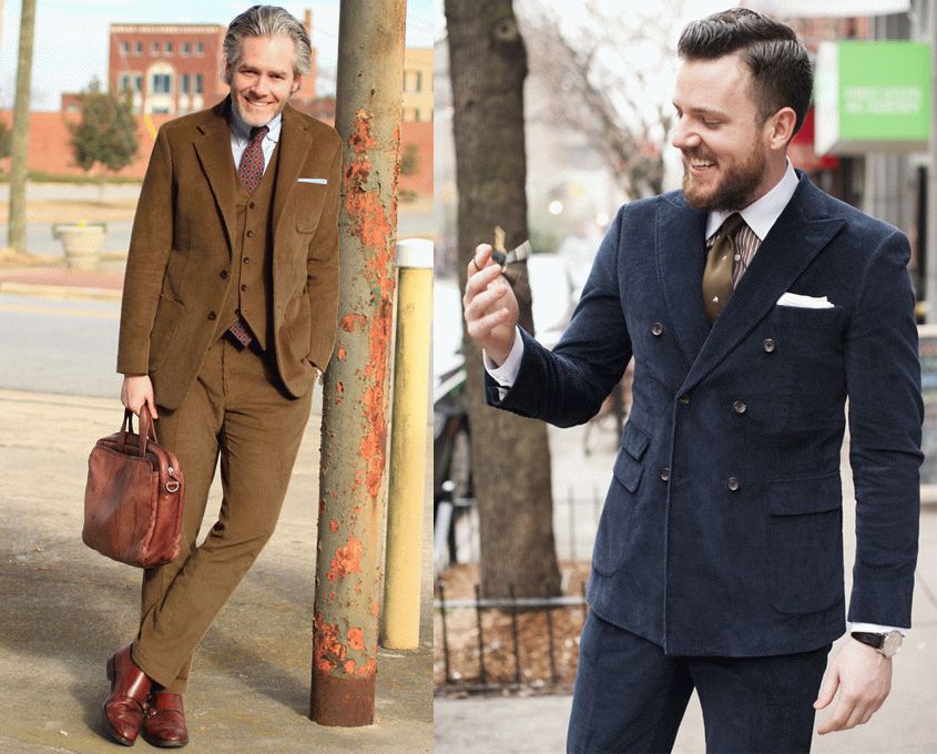 灯芯绒材质做的西装,曾经一度在男装中非常盛行。它不像常规的西装料那样一本正经,而是更多了分休闲的嬉皮味。