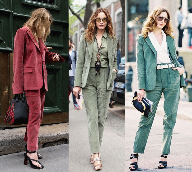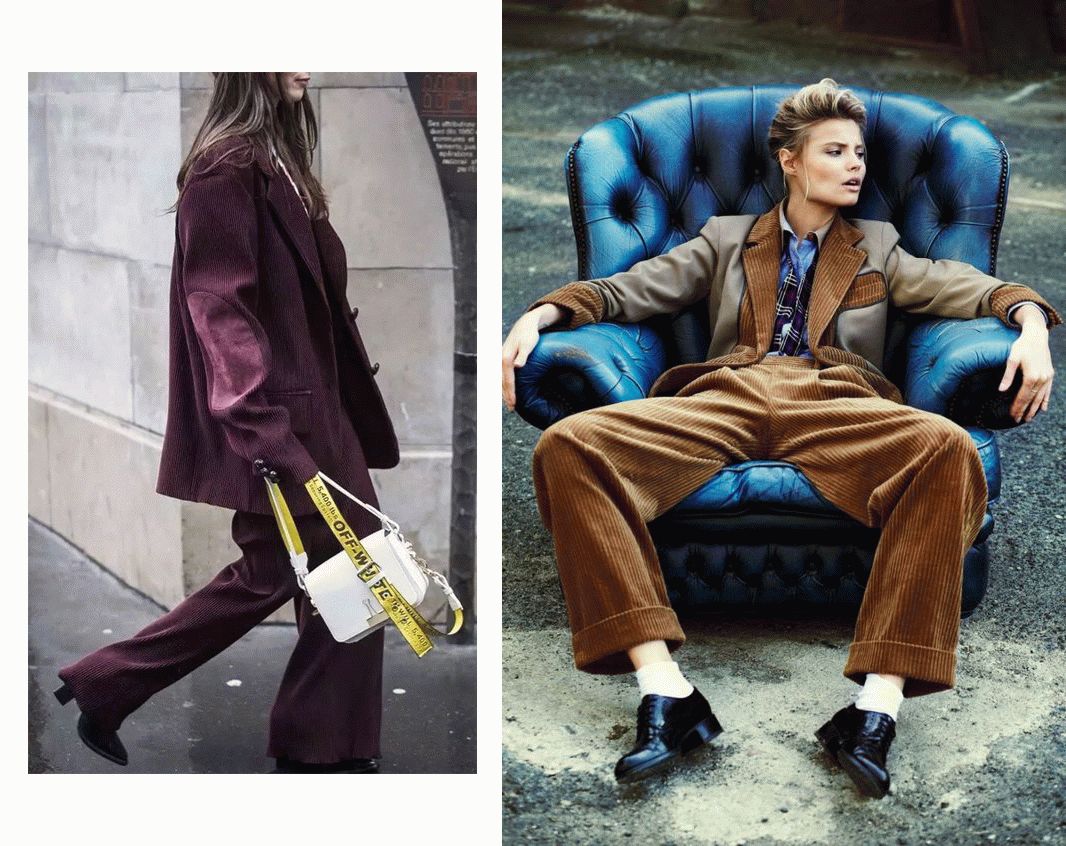 或许就是为了更凸显这份boylish,时装精们超爱成套穿搭。一组灯芯绒的西装+裤子,简直不能更帅气。