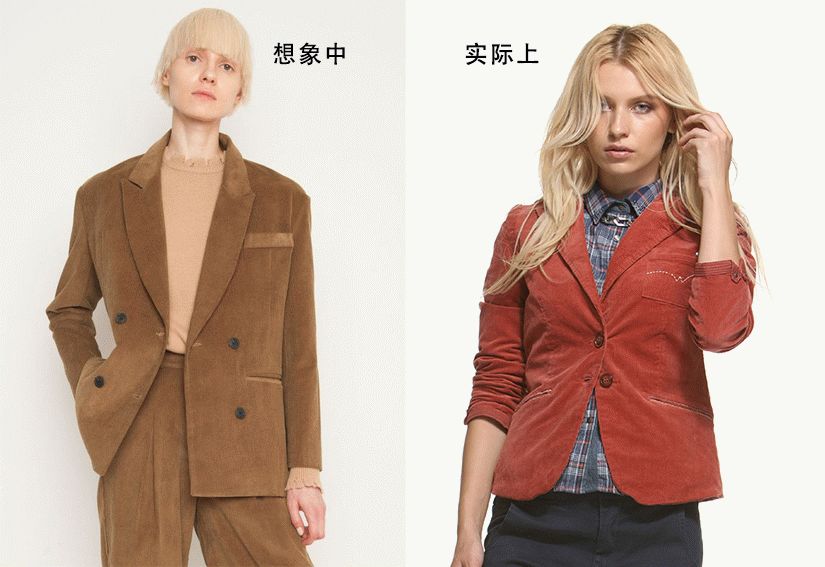 粗细均匀的细条灯芯绒,在光照之下的反射率比较稳定,会形成暗光泽,比较好驾驭。而宽条和不规则的坑条,会比较具有膨胀感。加上如果绒毛若是偏长的话,反光性也会更强,也就比较容易显胖,更挑人。
