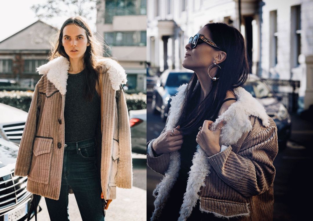 从国内的李斯丹妮,到国外的Hailey Baldwin,最近都选择了灯芯绒材质的外套出街。