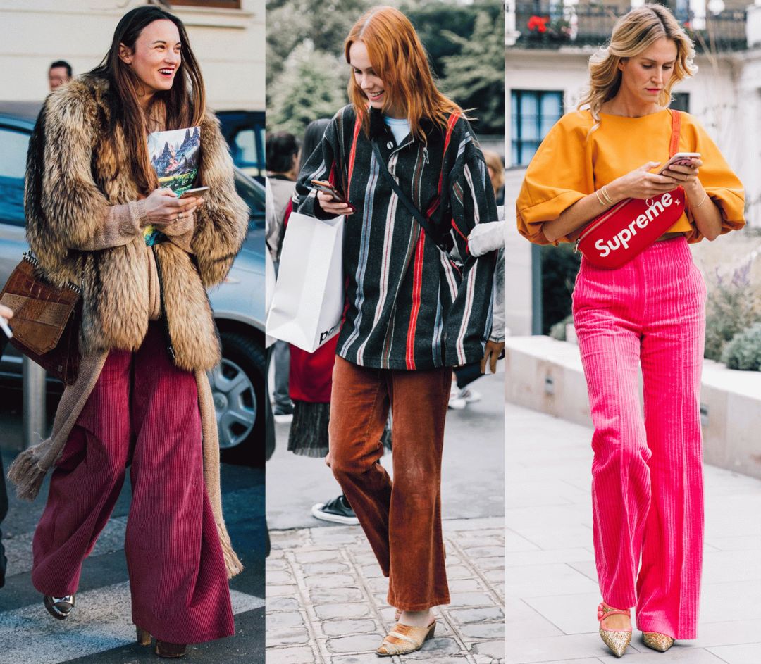 说起来在搜索灯芯绒单品的街拍时,发现灯芯绒的裤装简直就是占压倒性的优势碾压了所有其他单品啊!