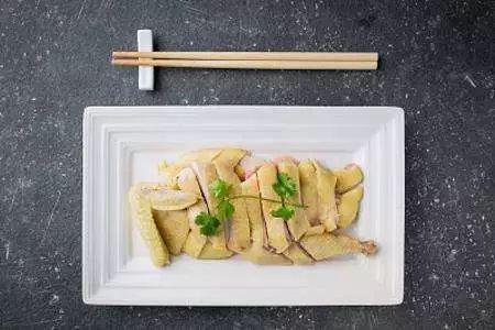 制作这道白斩鸡一定要对火候时间有精确的计算,只有在100度以下半开的水中反复浸泡才能做到鸡肉的Q弹与肉嫩。