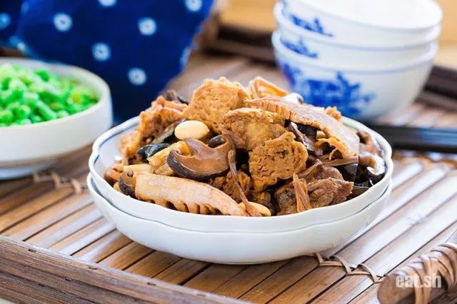这是一道上海人可以吃上一整个月份的菜肴,把水笋烧肉归类到冷盘中,也是有一定的道理。据说那个时候还没有流行冰箱,上海人家中就会存很多笋干(类似北方人囤白菜),烧一大锅炖肉慢慢吃。