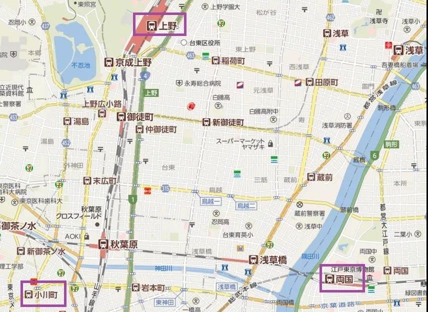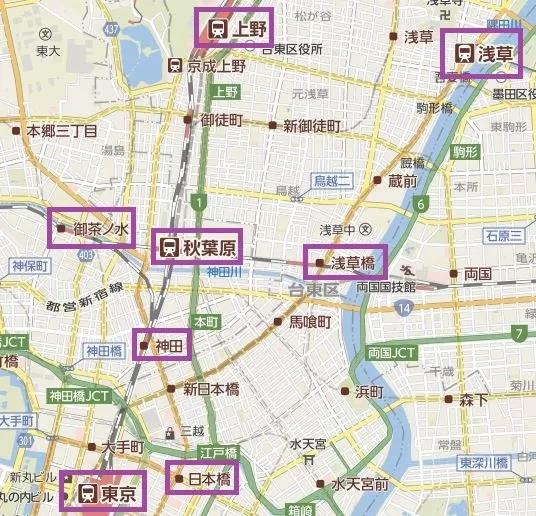 位于几大繁华街区正中的“秋叶原”。距离最远的“浅草”站也不过3km。