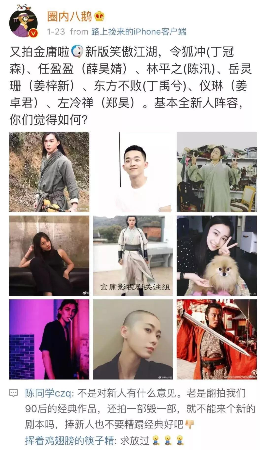 新版《流星花园》《泡沫之夏》《半生缘》《萍踪侠影录》刚刚公布演员花落谁家,《金粉世家》《倚天屠龙记》《神雕侠侣》《笑傲江湖》《霍元甲》《绝代双骄》《九月鹰飞》《陆小凤传奇》多部经典IP作品便前来报道。巧合的是,这些或正在拍摄或已经立项的“翻拍作品”90%都启用新人演员,“稚嫩青涩”的年轻面孔也不禁令观众产生疑虑:年轻代能否扛得起“致敬”经典大旗?