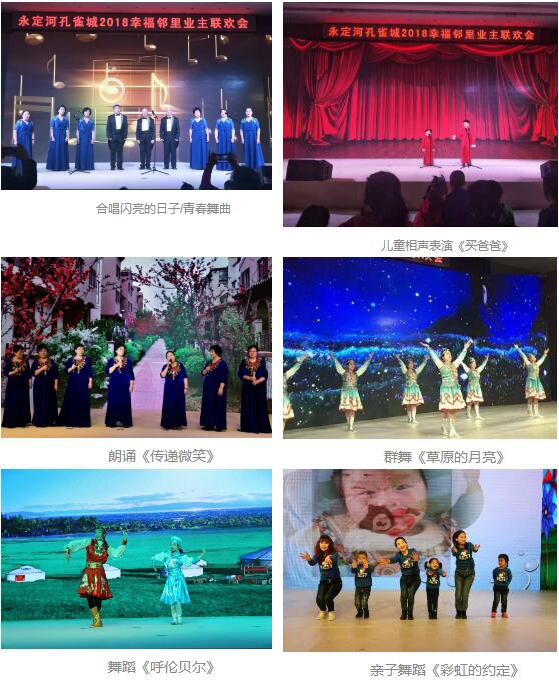 此次幸福邻里业主联欢会活动,所有的台前幕后工作人员均为孔雀城业主志愿者们,为了呈现出最精彩的节目效果,他们化身导演、剧务、主持人、化妆师、舞蹈人、表演者、保卫者......邻里们用多才多艺的表演征服了在场的每一位观众;用欢乐的笑声找到了幸福的归属;你们的大方演绎和勇敢表达,让联欢会更加绚烂多彩。感谢邻居们的辛苦付出,是你们感动了这座城市!