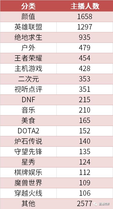 英雄联盟作为伴随直播一路走来的游戏,毫无意外成为了头部体重主播人数排名第2,绝地求生在“吞并”部分英雄联盟主播后,如今人气已经超越英雄联盟成为了人气最旺的直播板块,头部体重主播的排名第3。