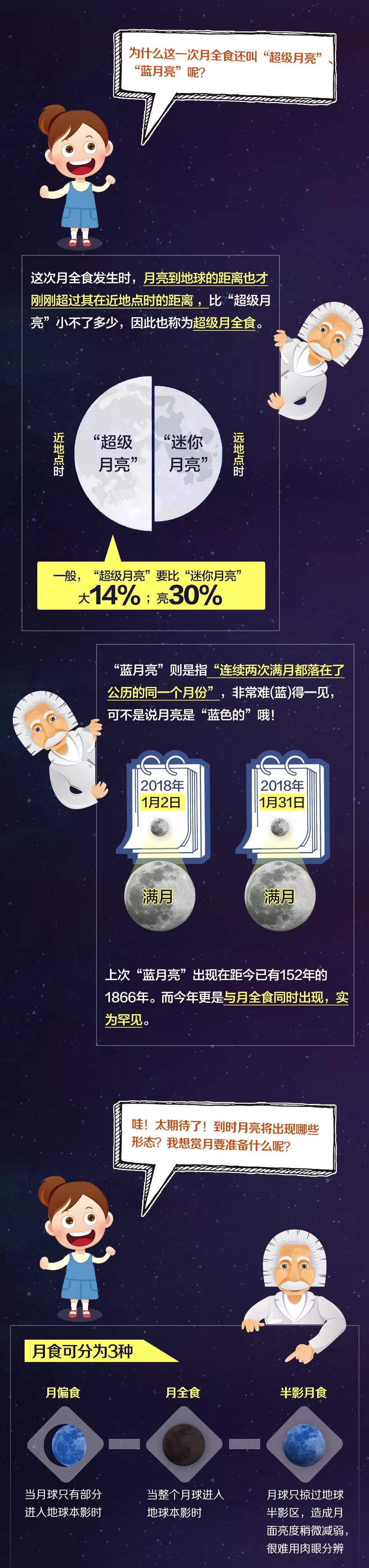 今晚,月亮女神将上演“月全食血月+超级月亮+蓝月”三景合一的天文奇观,150多年一遇。