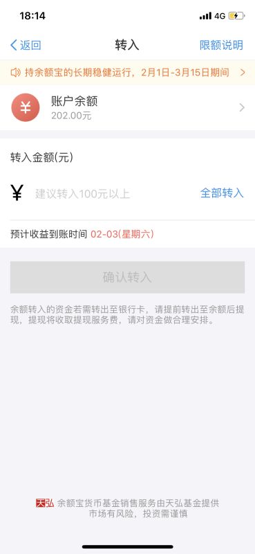 对用户来说,这一限制也意味着在2月1日-3月15日间,余额宝将暂停自动转入功能,但余额宝转出、消费、收益结算等都不受影响。