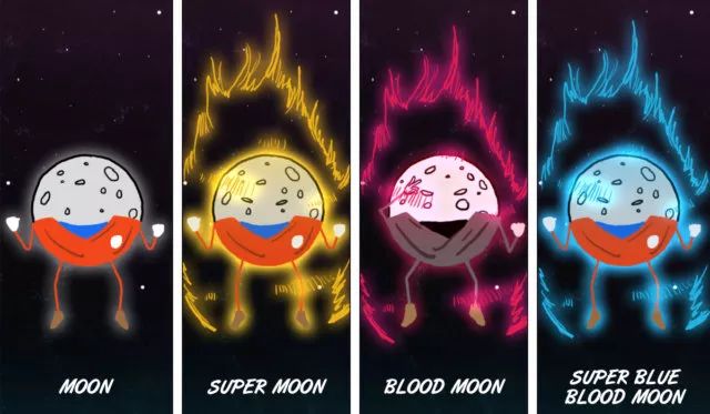 所谓“超级蓝血月”其实是3种奇妙天象的结合:月全食、蓝月亮和超级月亮(也称血月)。不过这里所说的“蓝月亮”并不是蓝色的月亮,而是一个月内出现两次满月的现象。也就是说,各位朋友圈里出现的蓝色大月亮都是P的!快去拆穿他们!