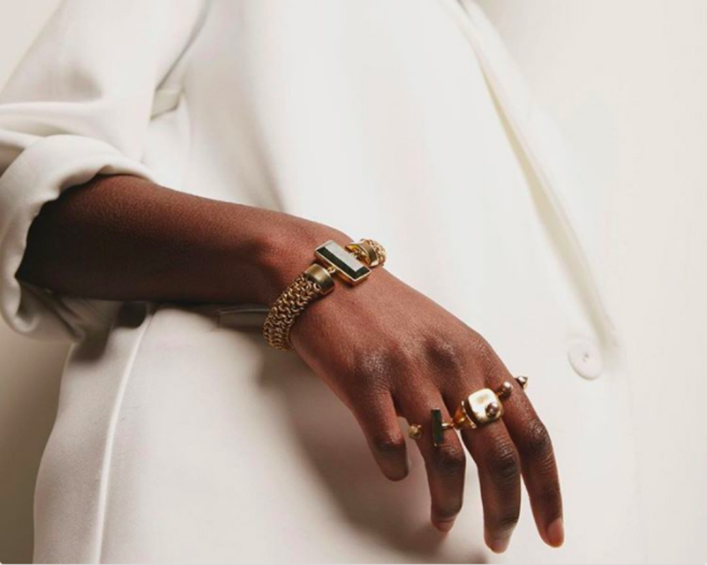 一位斯德歌尔摩的原外科医生Cornelia Webb有另类见解,Cornelia Webb凭借曾经主刀的经验,将首饰视作衣物,以人体为图纸绘制设计图,将人体线条与珠宝形态结合起来,设计出合体合身的珠宝配饰。手镯看似诡异的弧度刚好贴合手腕,戒指随指关节延伸,后背式长项链吊坠在脊椎处静止……,除此之外,Cornelia Webb配饰选材也颇具实验性,回收旧金属、淡水珍珠、矿石和皮革等都是品牌常用的素材,因此,Cornelia Webb配饰的性价比也很高。