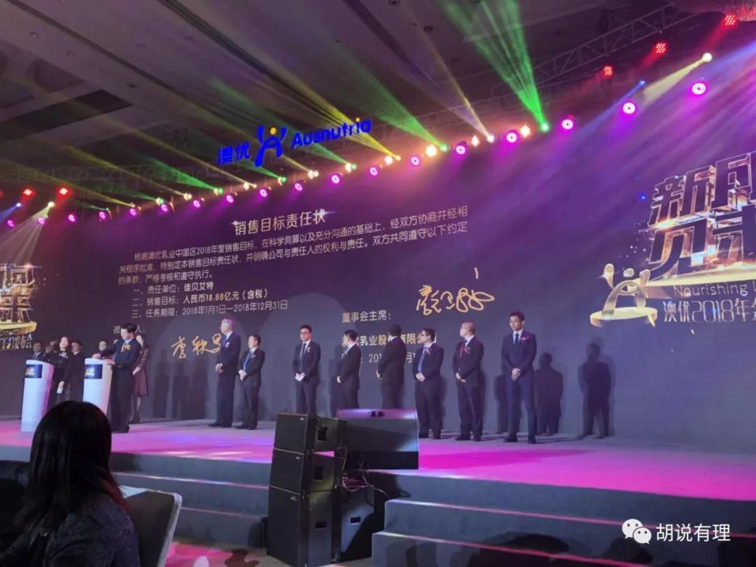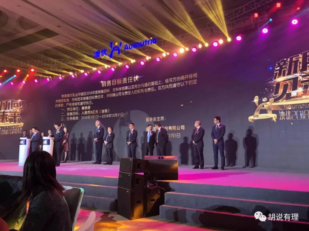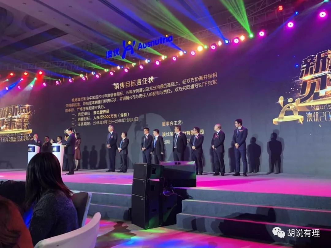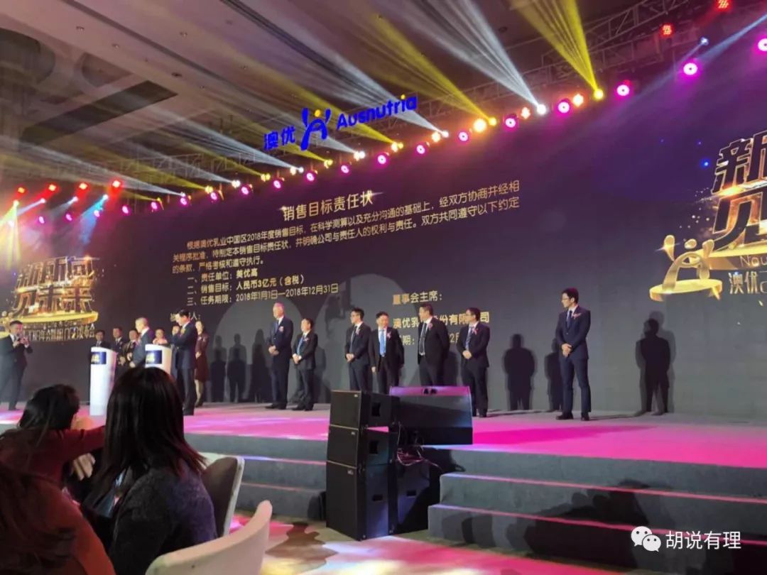 当天晚上,来自澳优各业务部门负责人也签署了2018年销售目标责任状,2018年,澳优的目标将从2017年的40亿跃升至2018年的60亿。