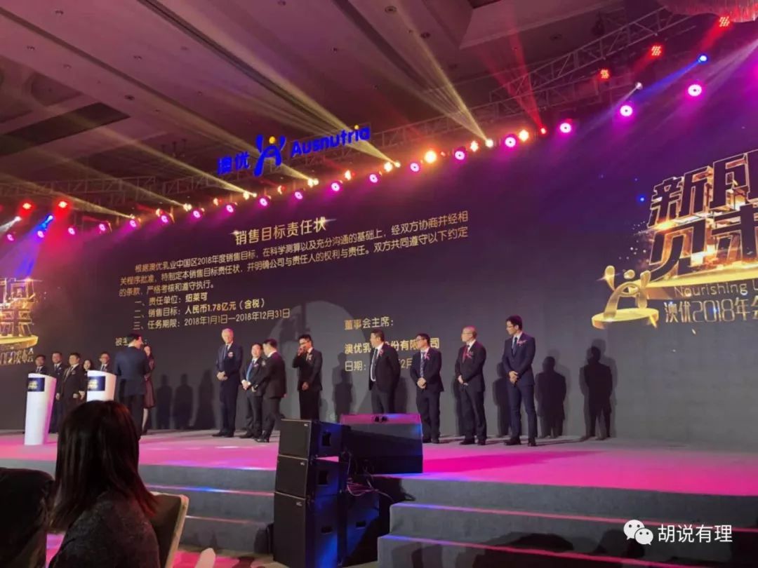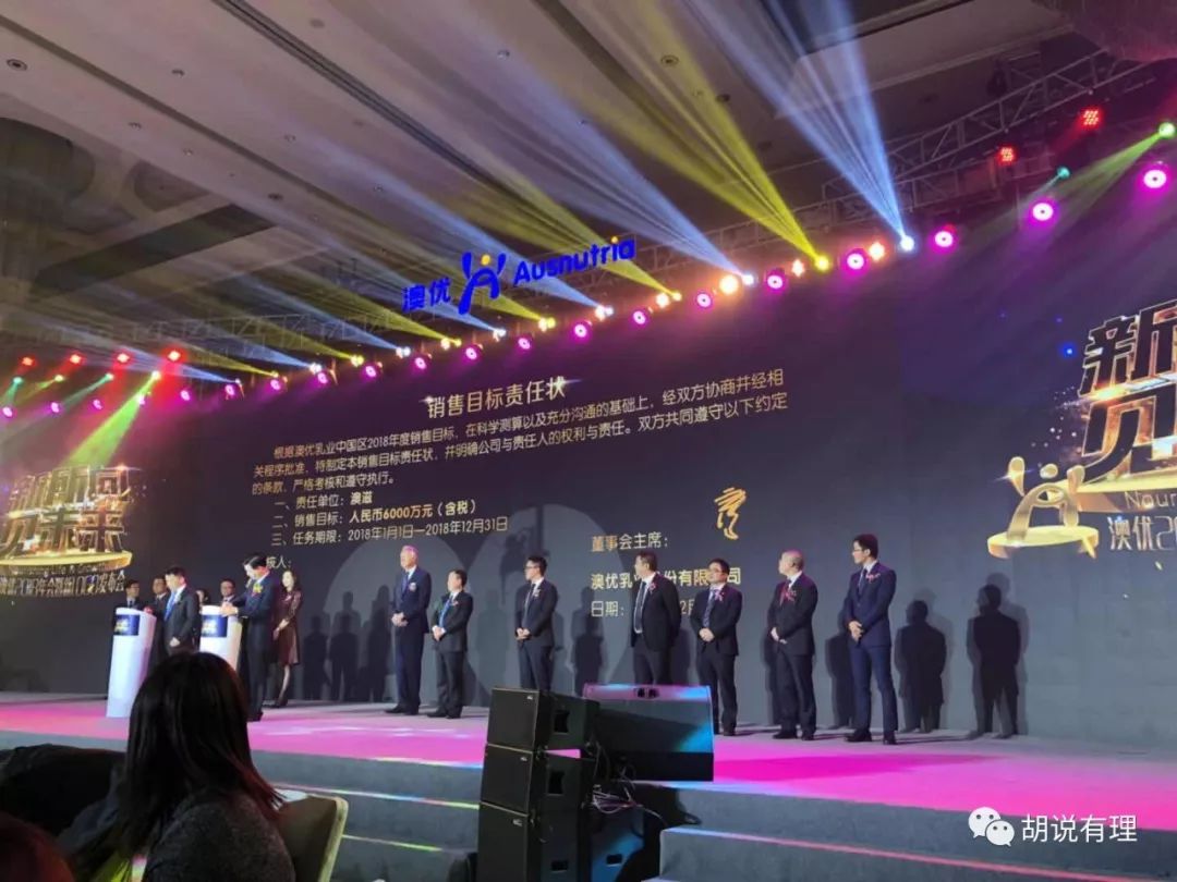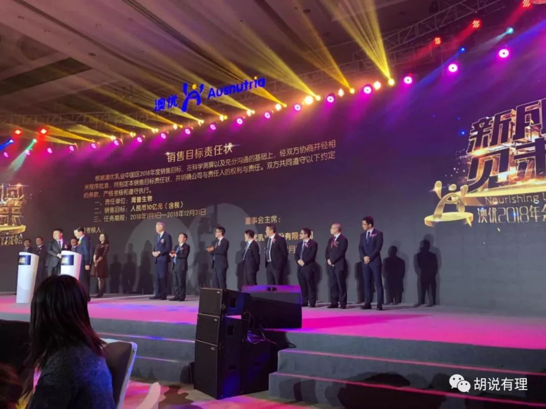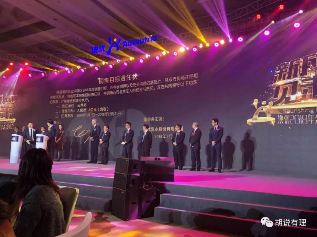 当天晚上,来自澳优各业务部门负责人也签署了2018年销售目标责任状,2018年,澳优的目标将从2017年的40亿跃升至2018年的60亿。
