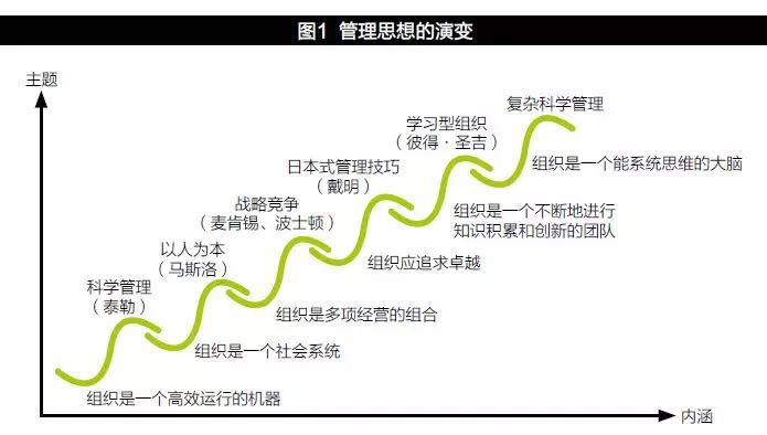 复杂科学管理是是继科学管理——人本管理——战略竞争——日本式管理技巧——学习型组织之后的新的管理思想(见图1)。