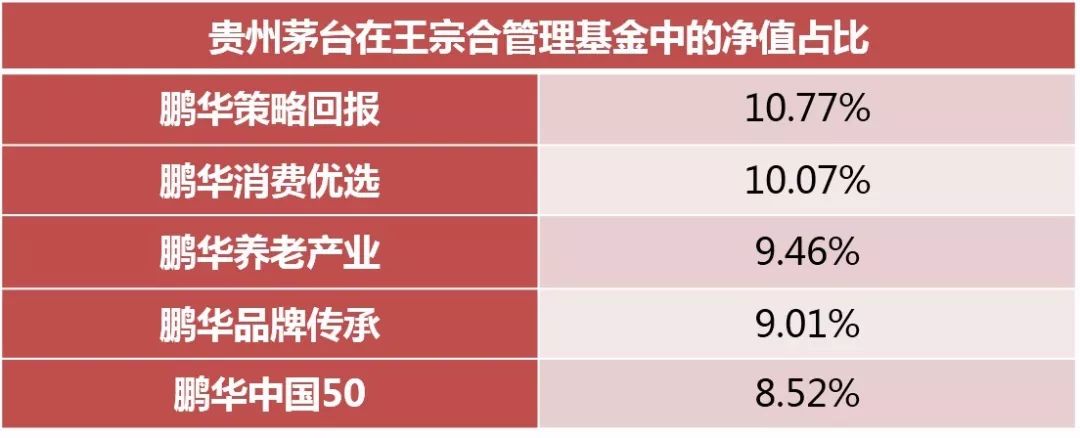 公开数据显示,王宗合目前单独管理了五只偏股票投资方向基金,截至2017年末,贵州茅台在这五只基金中净值占比都接近10%的持股上限。