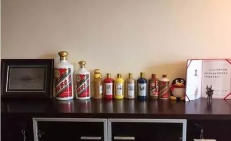 但斌办公室陈列的茅台酒