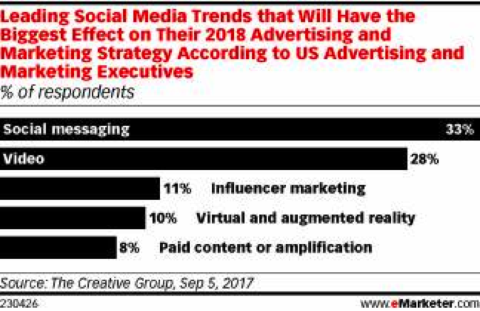 在渠道日益切割、垂直的新媒体时代,品牌主的可选项在不断增加,但单一渠道的有效性依然令人怀疑。面对眼花缭乱的媒介渠道,到底应该如何选择最优组合?据The Creative Group面向数百位广告和营销高层人员展开的调研数据显示,社交平台将是他们2018年最看好并将大力投入的渠道,而排在第二位的则是视频渠道。