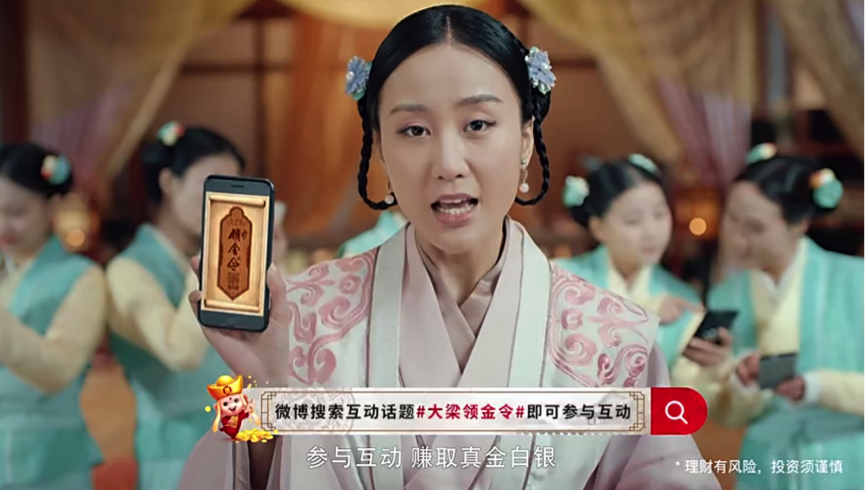 近日,国内金融品牌“唐小僧”顺应趋势,打出了一记“视频+社交媒体”渠道的组合拳,在电视剧《琅琊榜2》中植入类似番外篇的系列创意中插广告《大梁小剧场》,深度捆绑电视剧情节与人设,拍摄了大梁将军偷藏私房钱、霈儿“晕穷”等短剧,以故事化的内容来介绍产品优势。