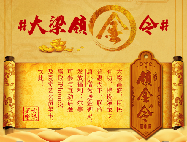许多品牌在做完视频广告的投放之后就选择了止步,而“唐小僧”则多迈出了几步。它通过在社交媒体新浪微博上持续延展剧集内容,发起#大梁领金令#的微博话题,不断向用户抛出“利益诱饵”,用一系列营销内容黏住用户。